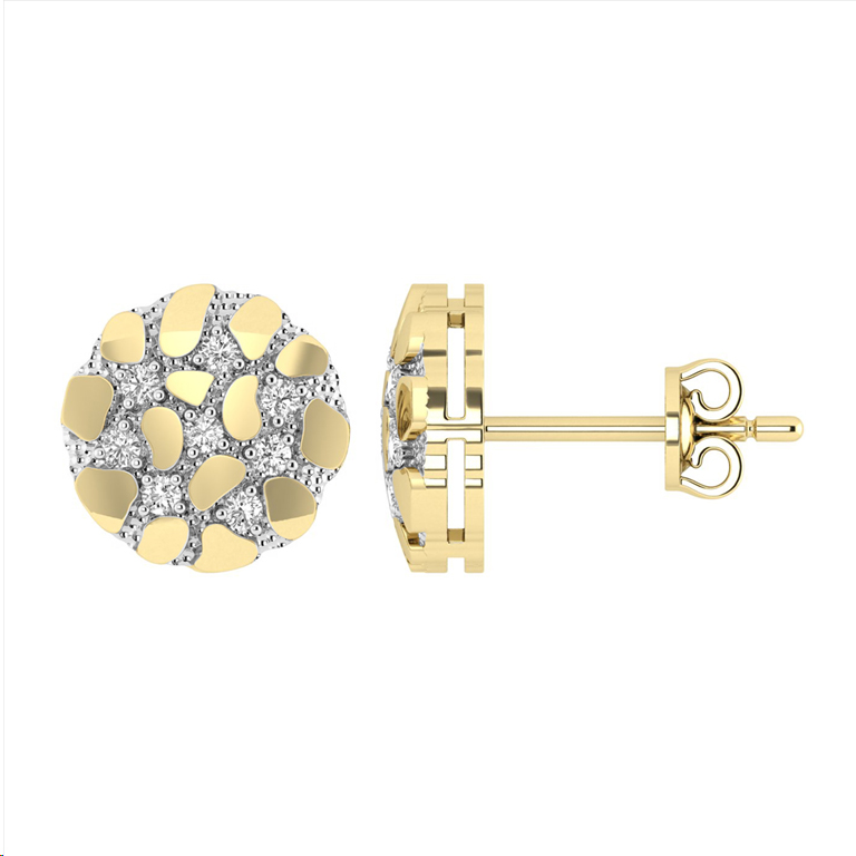 Ladies Nugget-Fashion Earrings 0.15Ct Round Diamond 10K Yellow Gold – Elegant Women’S Fashion Jewelry Gift