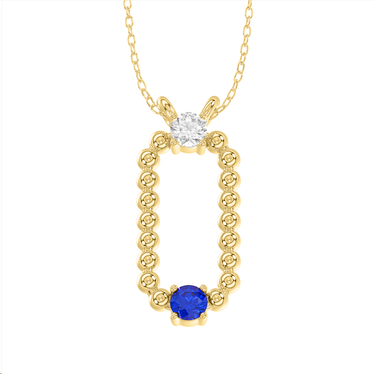 LADIES PENDANT WITH CHAIN 0.15CT ROUND/BLUE SAPPHIRE DIAMOND 14K YELLOW GOLD (CENTER STONE ROUND BLUE SAPPHIRE-0.10CT)