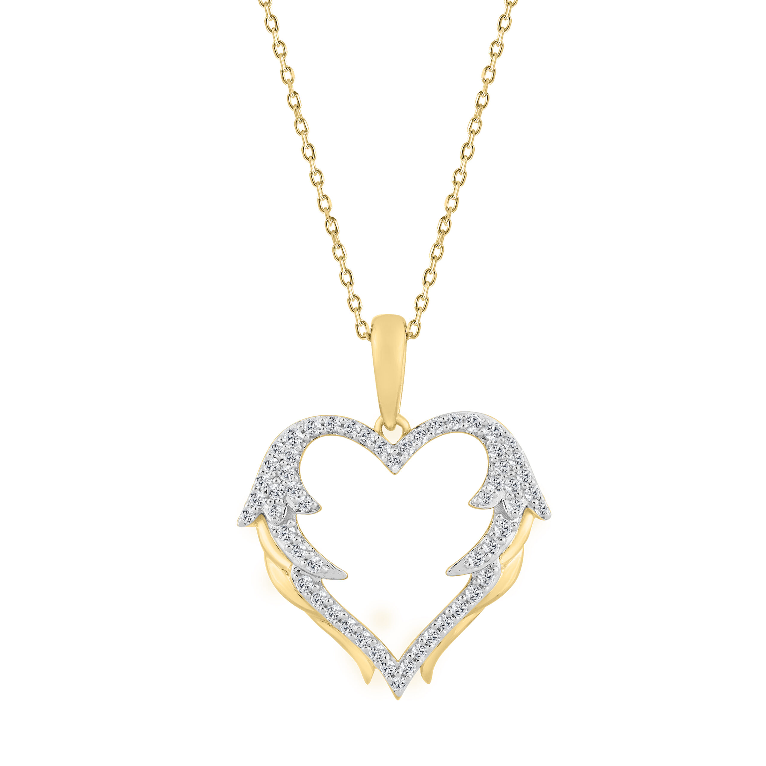 10K YELLOW GOLD DOUBLE HEART DIAMOND PENDANT WITH CHAIN 0.15CT ROUND DIAMOND LADIES JEWELRY