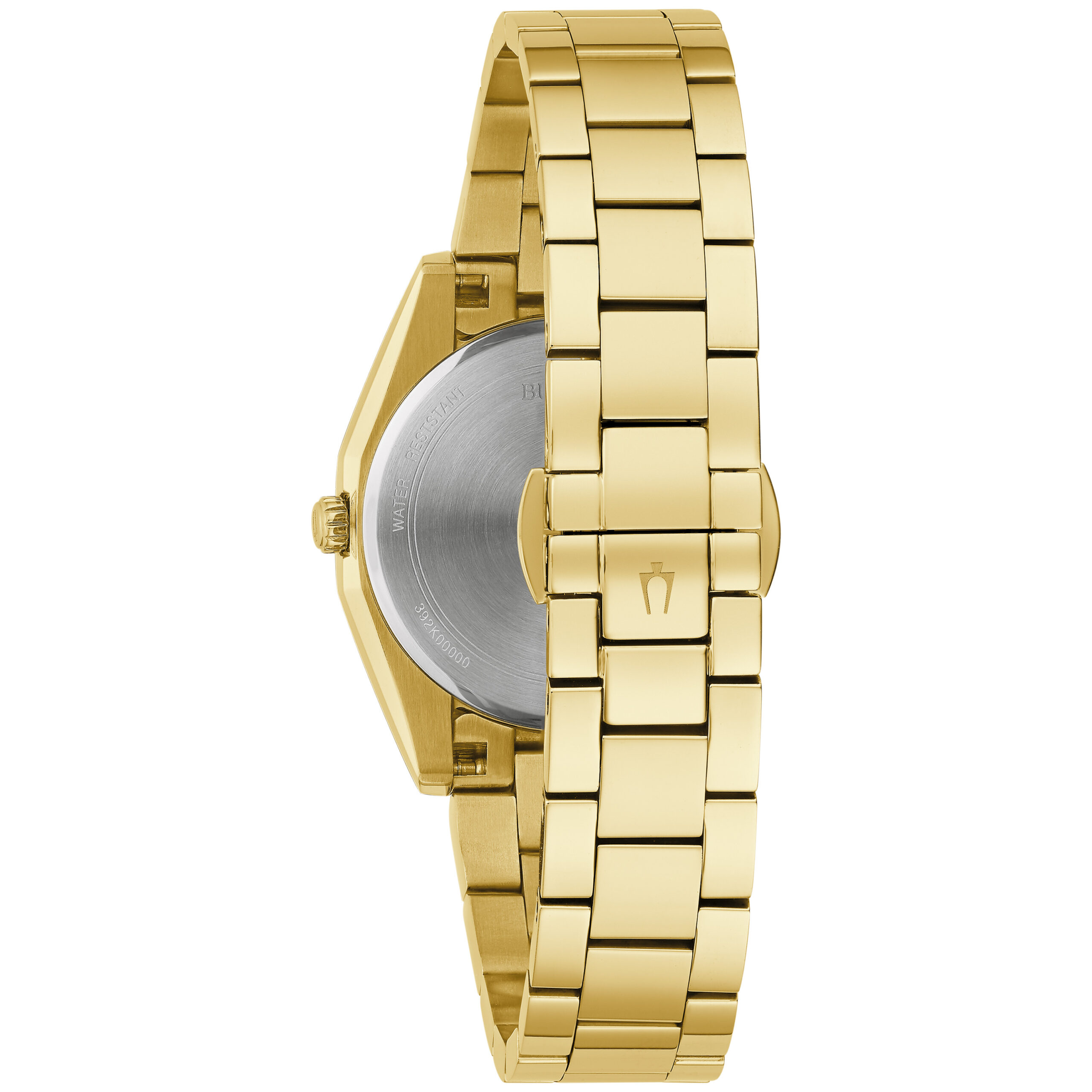 The Bulova 97P172 is a sophisticated timepiece designed for everyday elegance. Its gold-tone stainless steel case and bracelet create a refined, balanced look that works effortlessly across formal and casual settings. The combination of polished and brushed finishes adds depth while maintaining a clean, classic profile.