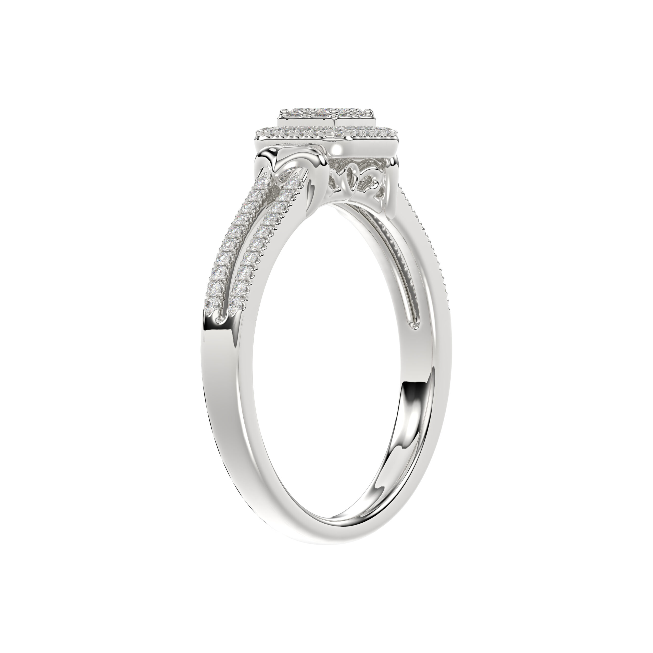 Adies 0.25Ct Round Diamond Sterling Silver White Promise Ring – Halo Oval Design With Split Shank, Elegant Women’S Jewelry
