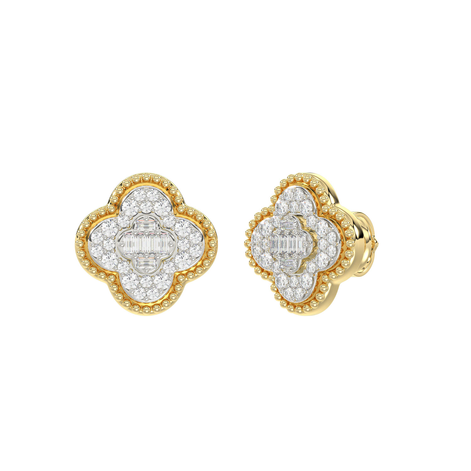 LADIES EARRING 0.25CT ROUND/BAGUETTE DIAMOND 10K YELLOW GOLD
