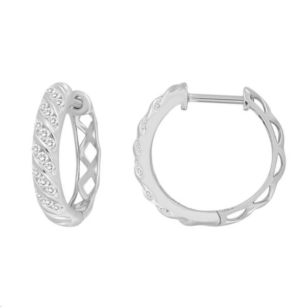 LADIES HOOPS EARRINGS 0.25CT ROUND DIAMOND 10K WHITE GOLD