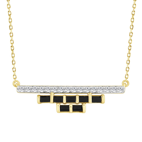 LADIES NECKLACE 0.50CT ROUND/BLACK/BAGUETTE DIAMOND 14K YELLOW GOLD
