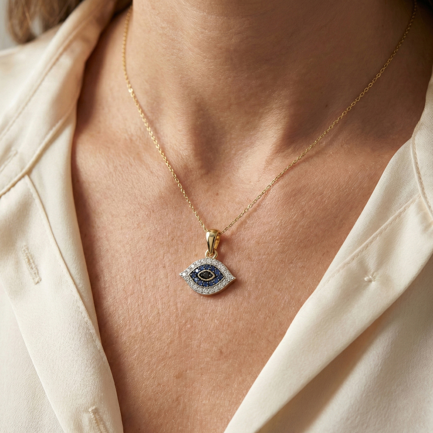 LADIES PENDANT 0.10CT ROUND/BLUE/BLACK DIAMOND 10K YELLOW GOLD