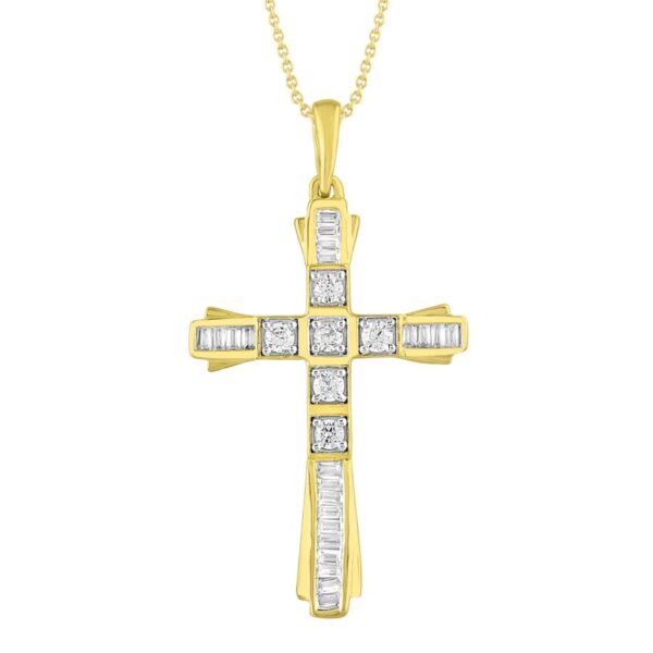 LADIES PENDANT 0.33CT ROUND/BAGUETTE DIAMOND 10K YELLOW GOLD