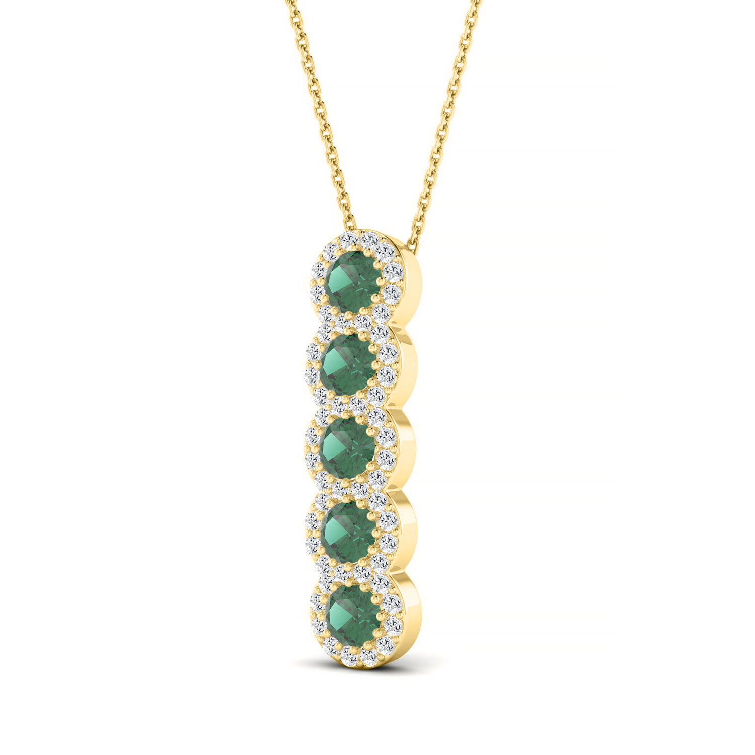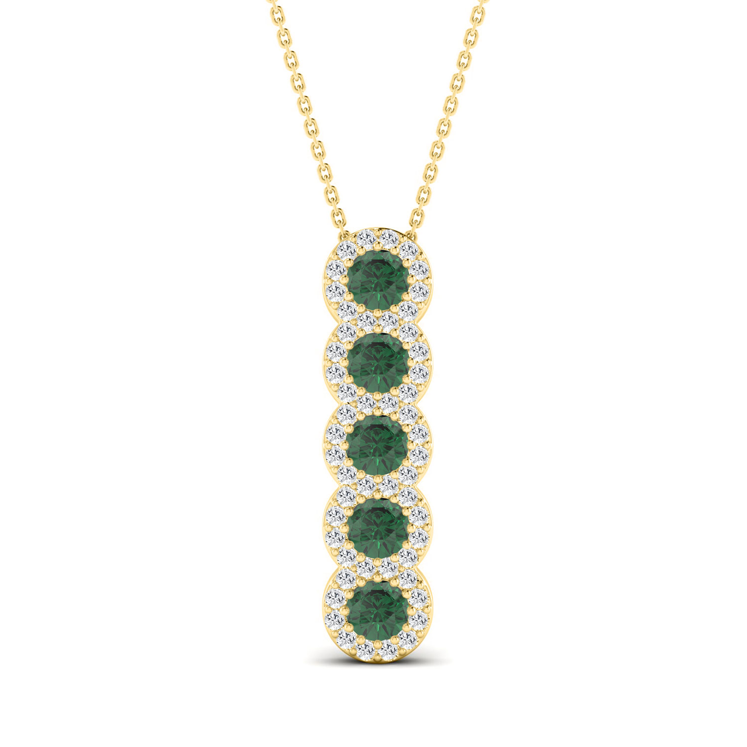 LADIES PENDANT WITH CHAIN 1.80CT ROUND/GREEN EMERALD ROUND DIAMOND 14K YELLOW GOLD