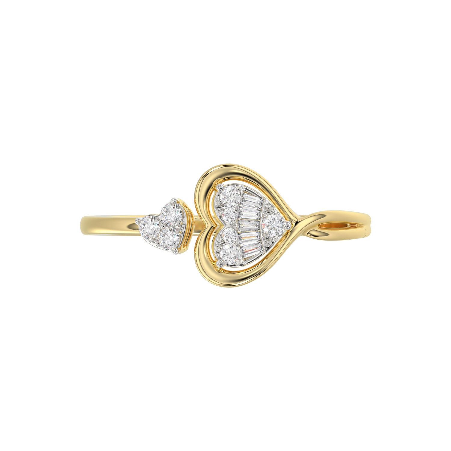 LADIES RING 0.20CT ROUND/BAGUETTE DIAMOND 10K YELLOW GOLD