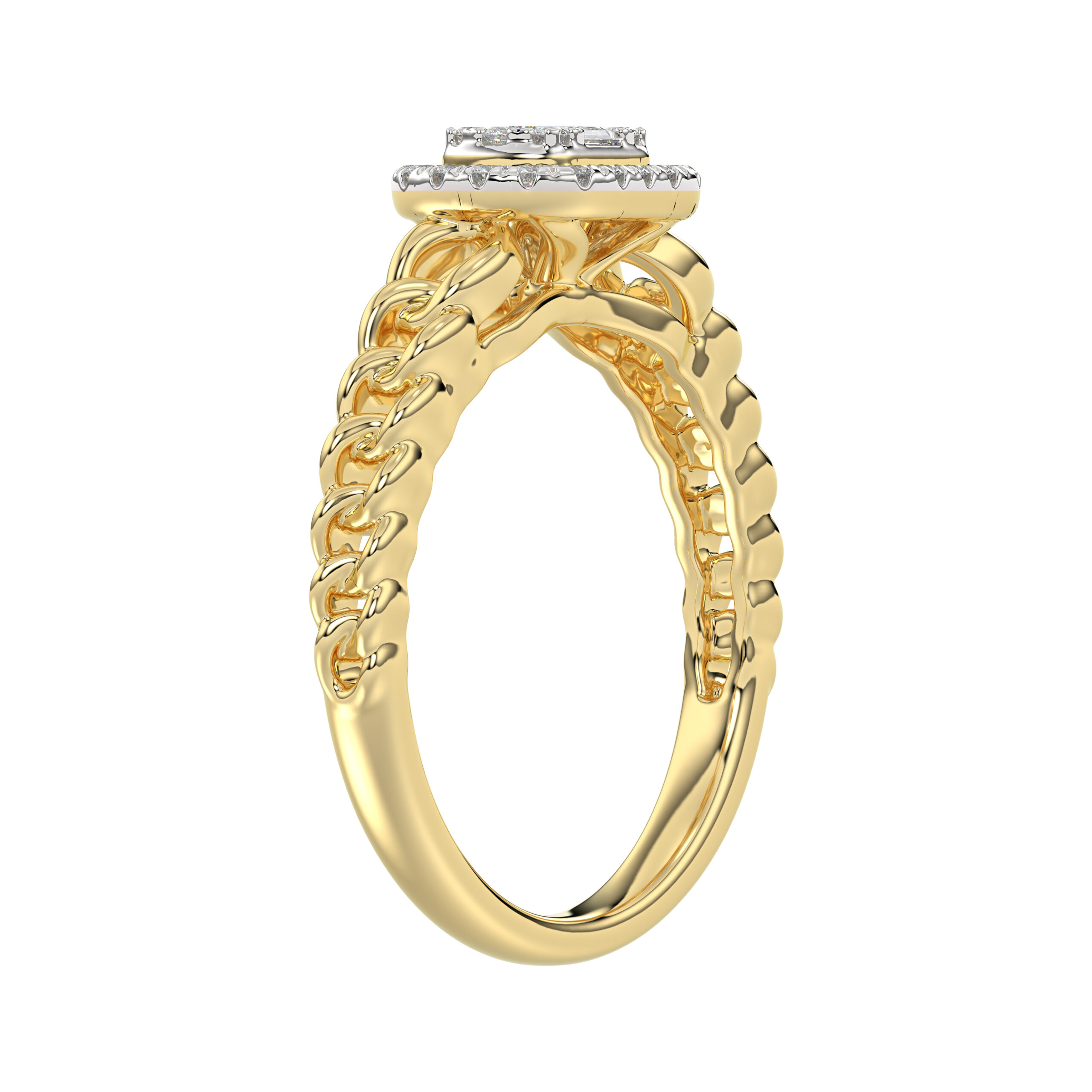 LADIES RING 0.15CT ROUND/BAGUETTE DIAMOND 10K YELLOW GOLD