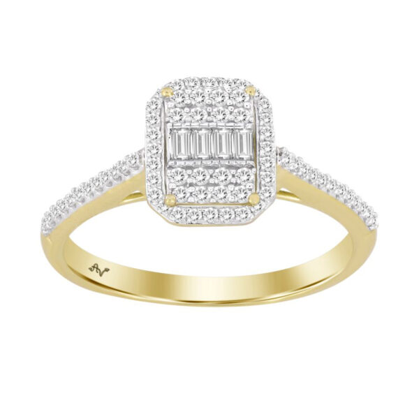 LADIES RING 0.25CT ROUND/BAGUETTE DIAMOND 10K YELLOW GOLD