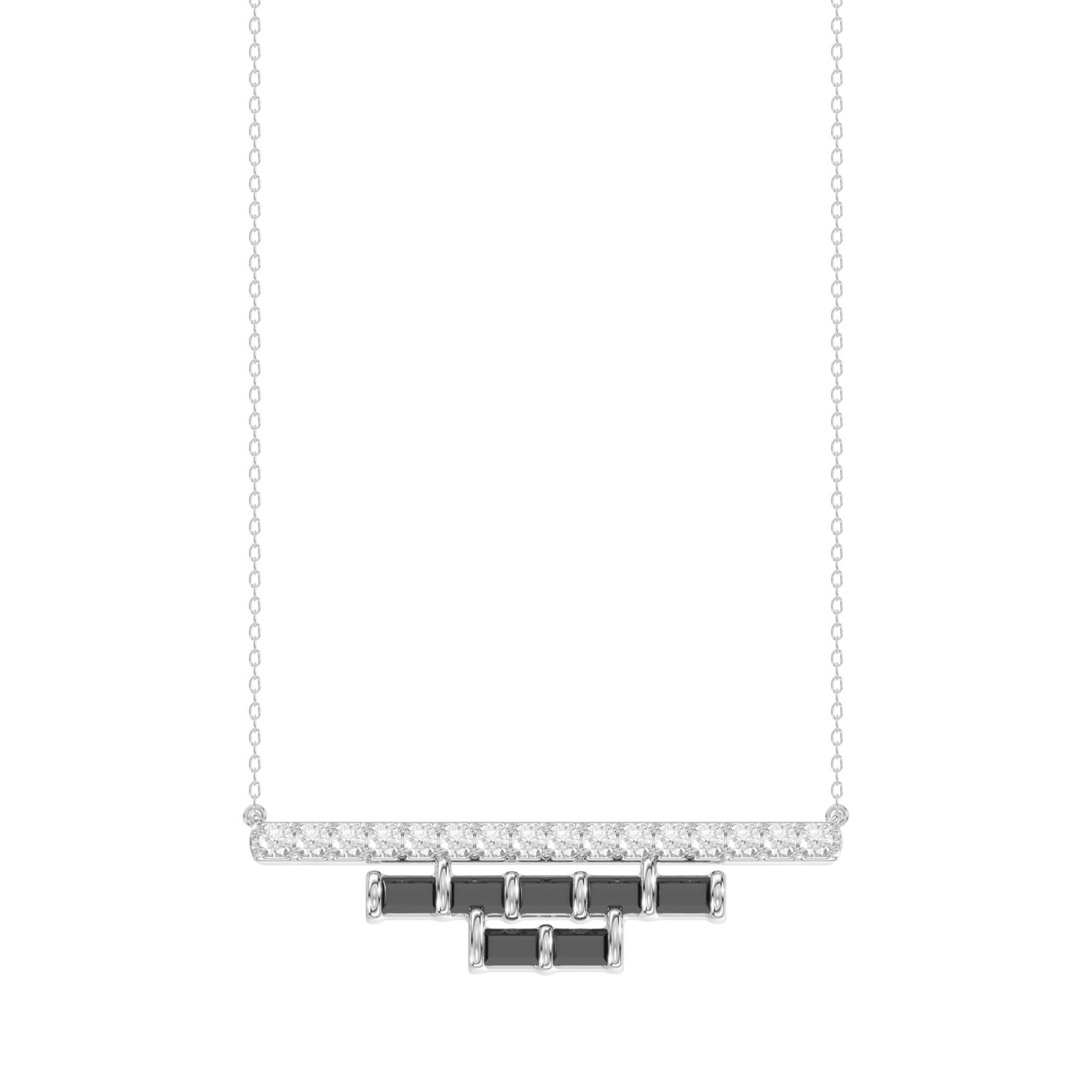LADIES NECKLACE 0.50CT ROUND/BLACK/BAGUETTE DIAMOND 14K WHITE GOLD
