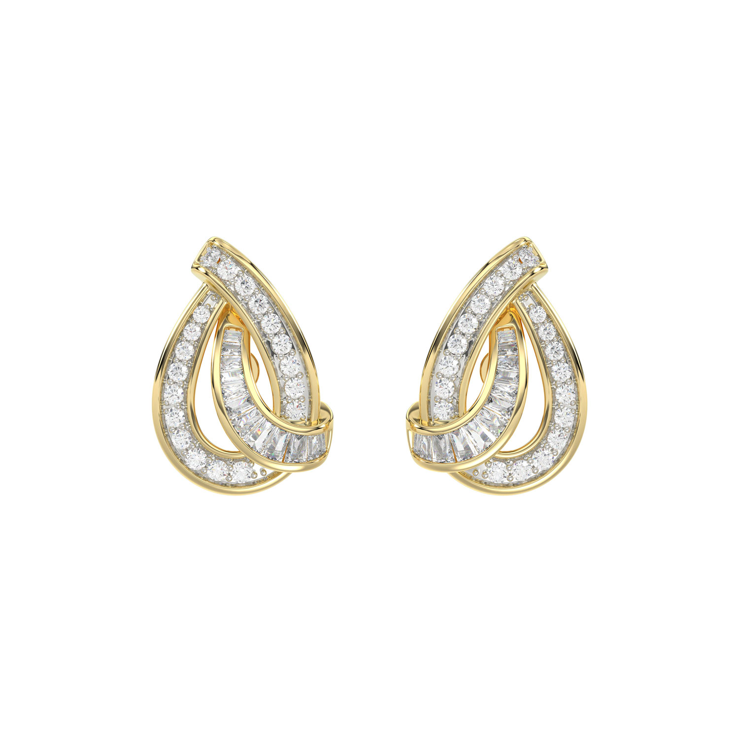 LADIES EARRING 0.20CT ROUND/BAGUETTE DIAMOND 10K YELLOW GOLD