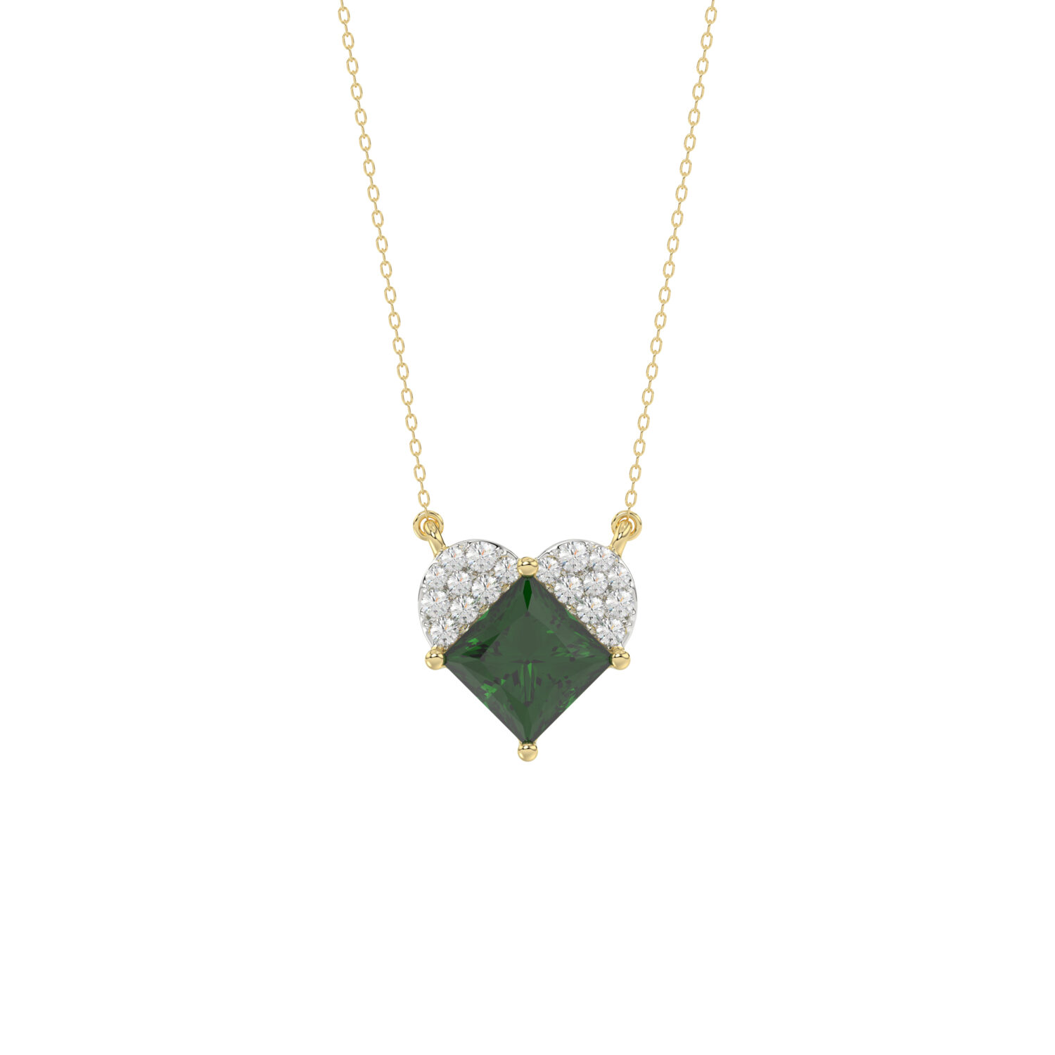 LADIES PENDANT 1.45CT ROUND/GREEN EMERALD PRINCESS DIAMOND 14K YELLOW GOLD (GREEN EMERALD PRINCESS 1.32CT)