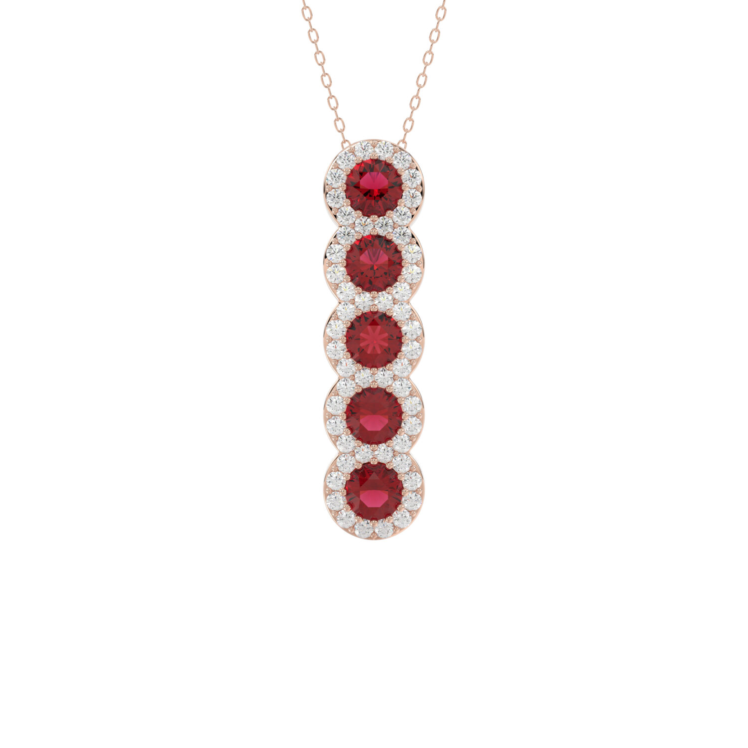 LADIES PENDANT 1.80CT ROUND/RUBY ROUND DIAMOND 14K ROSE GOLD (ROUND RUBY 1.40CT)